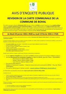 ENQUÊTE PUBLIQUE – RÉVISION DE LA CARTE COMMUNALE DE BOHAL