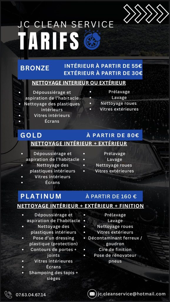 Un intérieur éclatant, une voiture comme neuve ✨ Découvrez nos 3 forfaits adaptés à chaque type de véhicule : compact, berline ou SUV/4×4.