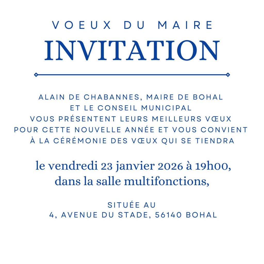 Alain de Chabannes, Maire de Bohal, et le Conseil municipal vous présentent leurs meilleurs vœux pour la nouvelle année ![]()