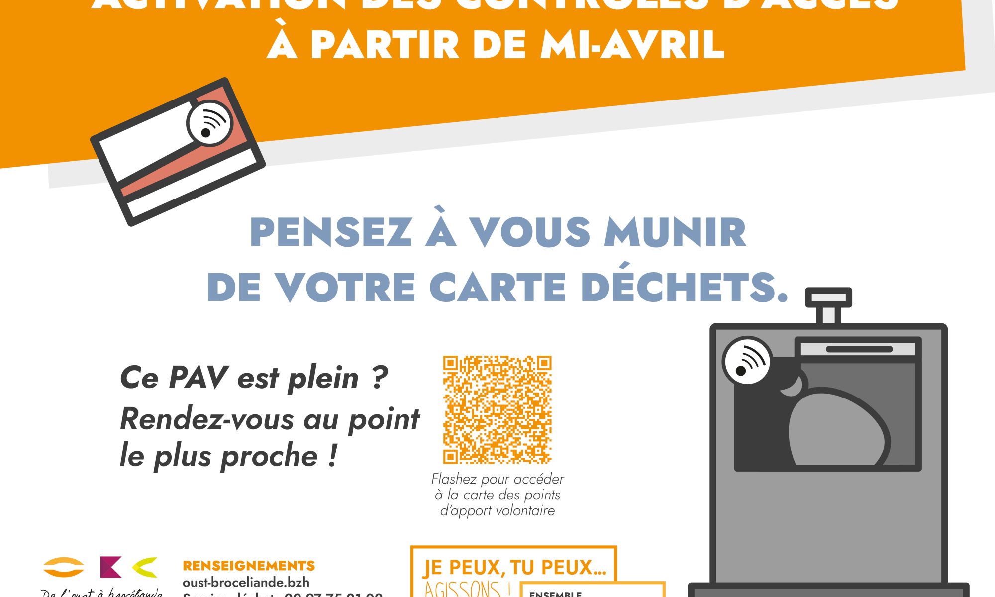 Dans le cadre de l’amélioration du service de gestion des déchets, nous vous informons que les contrôles d’accès sur les colonnes d’Ordures Ménagères Résiduelles (OMR) seront prochainement remplacés sur votre commune pour l’ensemble des Points d’Apport Volontaire (PAV). Installations programmées de mi-avril à mi-mai.