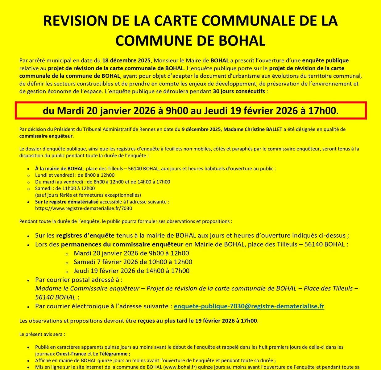 #Bohal#EnquêtePublique#CarteCommunale#Urbanisme#ParticipationCitoyenne